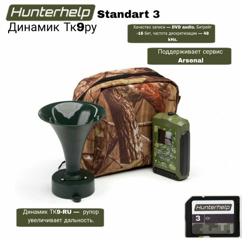 Электронный имитатор голосов птиц и зверей. Воспроизводит звуковую информацию, записанную в специальном формате в виде треков на съемную карту памяти. Качество воспроизведения - DVD-audio (48 кГц, 16 бит). Оснащен TFT дисплеем, позволяющим комфортно произвести настройки и выбор необходимой фонограммы. Управление манком осуществляется при помощи кнопок на передней панели. Комплектуется внешним динамиком ТК-9RU, реалистично воспроизводящим голоса гусеобразных, кабана, косули, вороны. Особенности: Съемная карта памяти с возможностью обновления фонограмм через Интернет. Манок комплектуется съемной картой памяти с фонотекой № 3 Юг (весь перечень голосов, входящих в эту фонотеку представлен на фото товара). Однако, Вы можете полностью заменить всю фонотеку или точечно добавить какие-то фонограммы, используя сервис АRSENAL» от Hunterhelp. Для скачивания доступны как бесплатные наборы фонотек, так и эксклюзивные платные голоса. Качество воспроизведения DVD-audio. Манок воспроизводит записи с качеством 256 кбит/с (битрейт - 16 бит, частота дискретизации - 48 кГц). Такое качество позволяет передавать максимально реалистичное звучание голоса, что позволяет подманивать даже рябчика. Возможность использования внешних динамиков. В комплекте с манком идет внешний динамик «ТК-9RU» с выходной мощностью 35 Вт, способный реалистично воспроизводить голоса гусеобразных, кабана, косули, вороны. Динамик комплектуется сразу двумя рупорами - большим и малым. Большой рупор - для подманивания с дальних расстояний (направленный звук), малый рупор - для подманивания на любых расстояниях (круговое звучание). При необходимости, можно использовать любой другой внешний динамик с сопротивлением 4-8 Ом и штекером типа «Джек» 3,5 мм. Быстрый доступ к заранее выбранной фонограмме. На передней панели манка предусмотрена отдельная кнопка для быстрого воспроизведения заранее выбранной фонограммы. Установка паузы между повторами воспроизведения голоса. При необходимости, для выбранного голоса можно установить длительность паузы между повторным циклическим воспроизведением этого же голоса. По умолчания, для всех голосов длительность паузы установлена 0 секунд. Максимальная длительность паузы, которую можно установить, составляет 99 секунд. Встроенный дисплей с регулировкой яркости. Манок оснащен TFT-дисплеем, при помощи которого осуществляется настройка манка и воспроизведение фонограмм (названия голосов отображаются крупным шрифтом). Дисплей способен работать при низких температурах (читаем, без искажений, при -20 °С). В настройках манка доступна регулировка яркости дисплея. Регулировка громкости. Громкость регулируется при помощи соответствующих кнопок на передней панели устройства. Регулировка громкости дает возможность подобрать оптимальную громкость воспроизведения фонограммы в зависимости от внешних факторов. Долговременная работа от батарей. Манок питается от 6 батареек типа «АА». Продуманные решения по энергосбережению позволяют экономить заряд батарей в режиме ожидания, что, в свою очередь, дает возможность использовать манок без замены батарей в течение нескольких дней. Разъем для подключения внешнего источника питания. При помощи этого разъема манок может питаться от внешнего источника питания 12 В, что позволяет значительно увеличить время непрерывной работы 