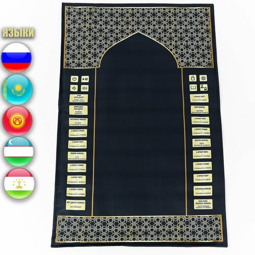 Этот коврик оснащен новейшей технологией, способной обеспечить интерактивный процесс обучения. Встроенные многоязычные аудиоинструкции (русский, казахский, кыргызский, таджикский, узбекский) и визуальные схемы позволяют пользователям в режиме реального времени понимать и запоминать правильный ход каждого намаза.
