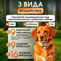 Всего предустановлено 16 уровней электростимуляции (от еле ощутимой для мелких пород и до мощной для собак с высоким болевым порогом), 9 различных звуковых сигналов, 9 уровней вибрации. Вы сможете точно подобрать уровень воздействия в соответствии с чувствительностью вашей собаки.