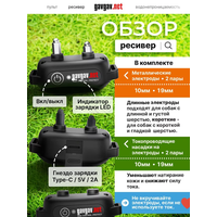 | Подробная комплектация | Пульт-1, Ресивер-1, Электроды-4, Насадки-4, Ошейник-1, USB-1, Инструкция на русском-1 |
