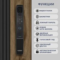 Функции: Встроенный видеоглазок; Звонок; Ложный пароль; Режим анти-взлома; Двойная верификация обеспечивает высокий уровень защиты от нежелательного доступа; Голосовой гид; Удаленный доступ (приложение USmart Go); Автоматическая блокировка.