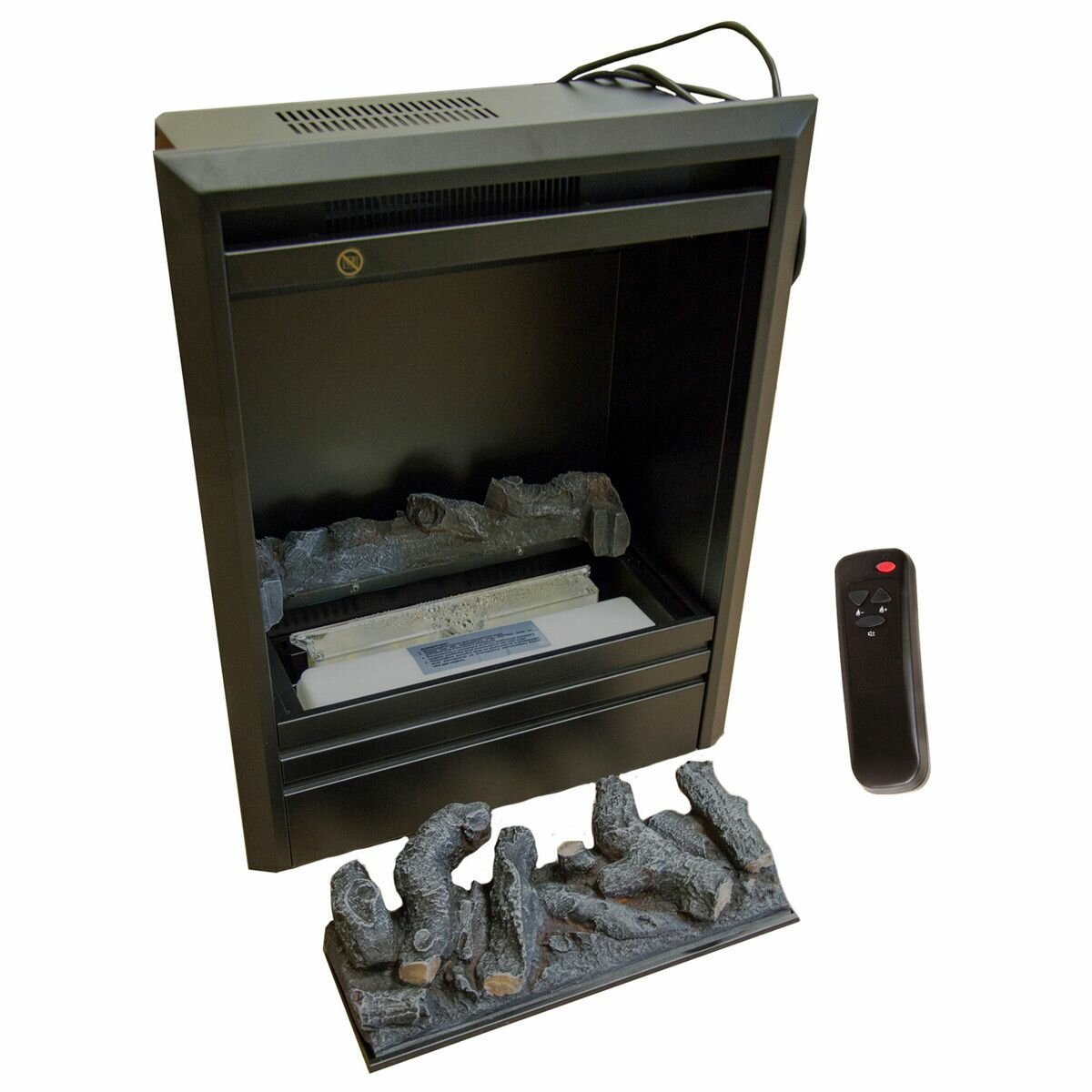 Электрокамин RealFlame Fobos Black с пультом ДУ, кованная решётка, звуковой эффект, 2 режима обогрева (электрический камин, электроочаг)