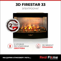 Электроочаг RealFlame FireStar 33 3D, имитация живого пламени 3D, обогрев, увлажнение, звуковой эффект, пульт ду