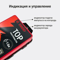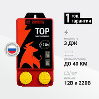 Генератор импульсов подходит для небольшой электроизгороди (до 40 км). Этот прибор создан специально для ограждения небольших пастбищ, придомовых территорий и огородов. При этом покупатель не переплачивает за избыточную мощность и функционал, которые нужны для больших электроизгородей. Мощности импульса 3 Дж, хватает для ограждения территории площадью до 25 Га. Выходное напряжение импульса составляет 10 кВ. ТОР-3 Лайт потребляет минимум энергии (0,003 кВт/ч), что позволяет работать от автомобильного аккумулятора до 9 дней.