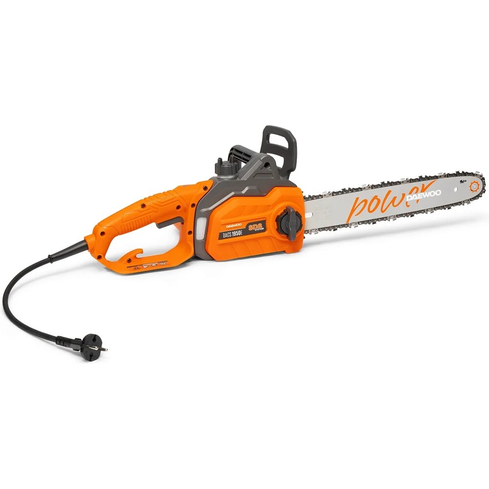 Электрический двигатель DAEWOO. Двигатель специально разработан для цепных пил, обладает высокой мощностью 1850 Вт и низким уровнем шума. Обеспечивает эффективную работу пилы с различным типом древесины. Облегченное натяжение цепи. Система обеспечивает простоту установки и регулировки натяжения цепи с применением минимального количества инструмента. Корпус из металла. Прочный корпус из металлического сплава обеспечивает надежность и долговечность эксплуатации всех приводных механизмов и рабочих узлов цепной пилы. Металлический зубчатый упор. Обеспечивает безопасную работу при распиле крупных бревен. Ведущая звездочка из металла. Металлическая ведущая звездочка гарантирует долговечность и надежность работы привода электропилы. Автоматическая система смазки цепи. Обеспечивает принудительную подачу масла к цепи для снижения трения и увеличения ресурса электропилы.