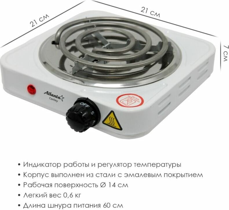 Купить Электроплитка одноконфорочная ATLANTA ATH-1734 (белая) с доставкой по всей России. Электроплитка одноконфорочная ATLANTA ATH-1734 (белая): сравнение цен, характеристики, фото, актуальное наличие и цены.