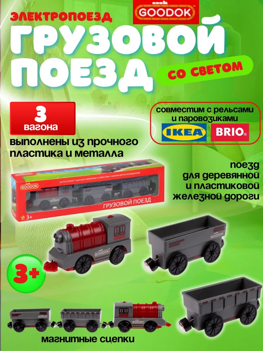Купить Электропоезд «Грузовой поезд» 3 вагона со светом GOODOK с доставкой по всей России. Электропоезд «Грузовой поезд» 3 вагона со светом GOODOK: сравнение цен, характеристики, фото, актуальное наличие и цены.
