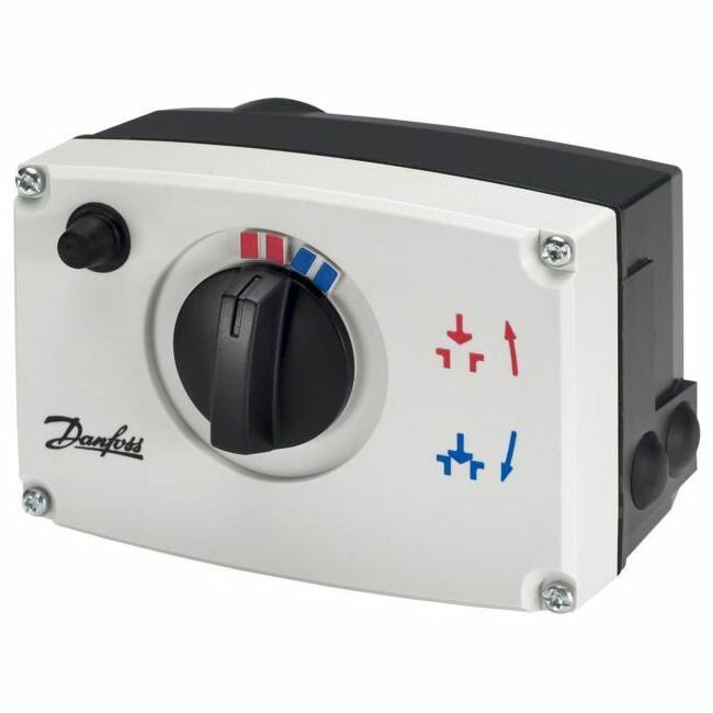 Описание товара Danfoss AMV 152 DN15-50 (082G6007) Электропривод Электроприводы Danfoss AMV предназначены для управления регулирующими клапанами VGS, VGU(F) и AVQM по импульсному сигналу от трехпозиционных электронных регуляторов Danfoss типа ECl или подобных. Кроме стандартных функций, таких, как ручное позиционирование и индикация положения, приводы имеют концевые моментные Редукторные электроприводы Danfoss AMV с возвратной пружиной выключатели, прекращающие их работу при возникновении перегрузок, а также при достижении штоком клапана крайних положений. Управляют работой электрических приводов с помощью электронных регуляторов (контроллеров). Контроллеры формируют аналоговый или трёхточечный управляющий сигнал. Положение штока привода при аналоговом управлении зависит от номинала напряжения в диапазоне от 0 до 10В, а при трёхточечном управлении величина управляющего сигнала постоянна, но поступает он по различным каналам. Сфера применения Линейные электроприводы применяются для управления двух и трёхходовыми регулирующими клапанами с поступательным перемещением штока. Электроприводы AMV устанавливают в системах отопления, вентиляции и горячего водоснабжения зданий, а также в системах автоматизации технологических процессов.