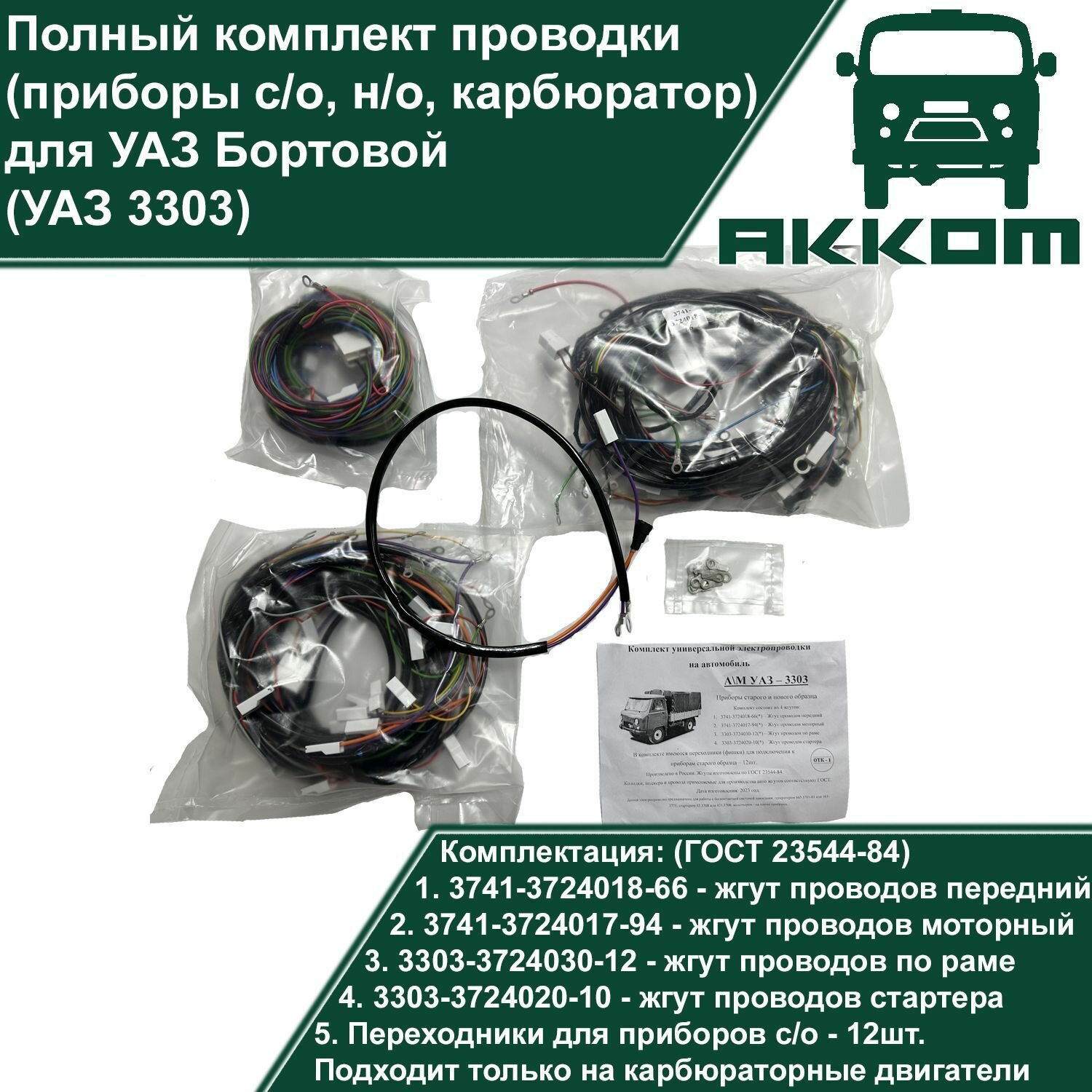 Электропроводка полная УАЗ Бортовой (УАЗ 3303, универсальный, приборы с/о и н/о, карбюраторный двигатель, комплект) (ТК акком): сравнение цен, характеристики, фото, актуальное наличие и цены.
