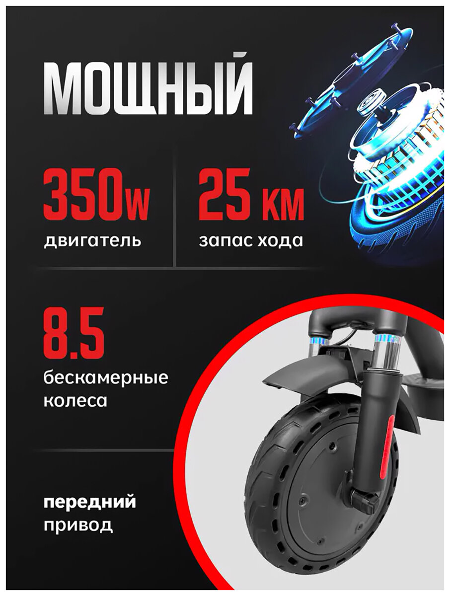 | Особенности электросамоката | дисплей, задний габарит/стоп-сигнал, индикатор заряда, индикатор скорости, передняя фара (фонарь), поддержка Bluetooth, привод передний, приложение на смартфон, сиденье в комплекте |