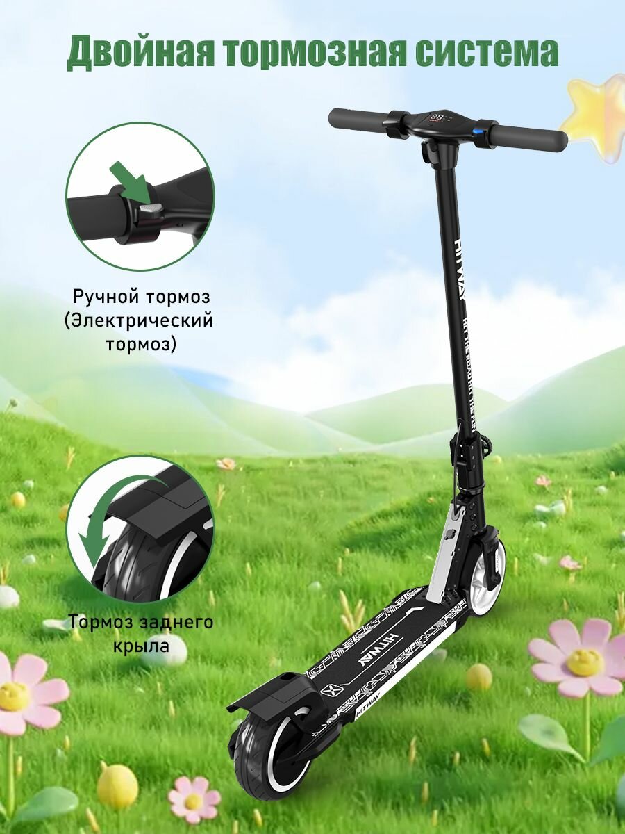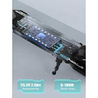 | Особенности электросамоката | задний габарит/стоп-сигнал, индикатор заряда, индикатор скорости, передняя фара (фонарь), подсветка, привод задний |