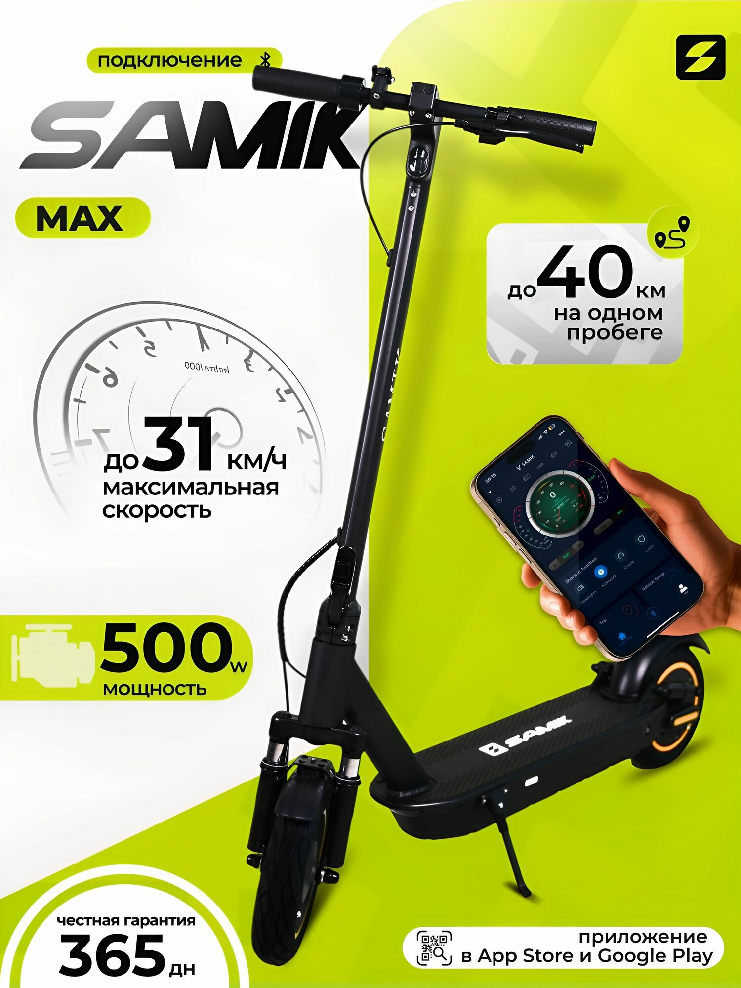 Купить Электросамокат SAMIK Max, максимальная скорость 31 км/ч, задний привод, черный с доставкой по всей России.