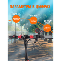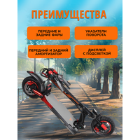 | Особенности электросамоката | индикатор заряда, подсветка, ограничитель скорости, привод задний, задний габарит/стоп-сигнал, индикатор скорости, передняя фара (фонарь), дисплей, сиденье в комплекте |