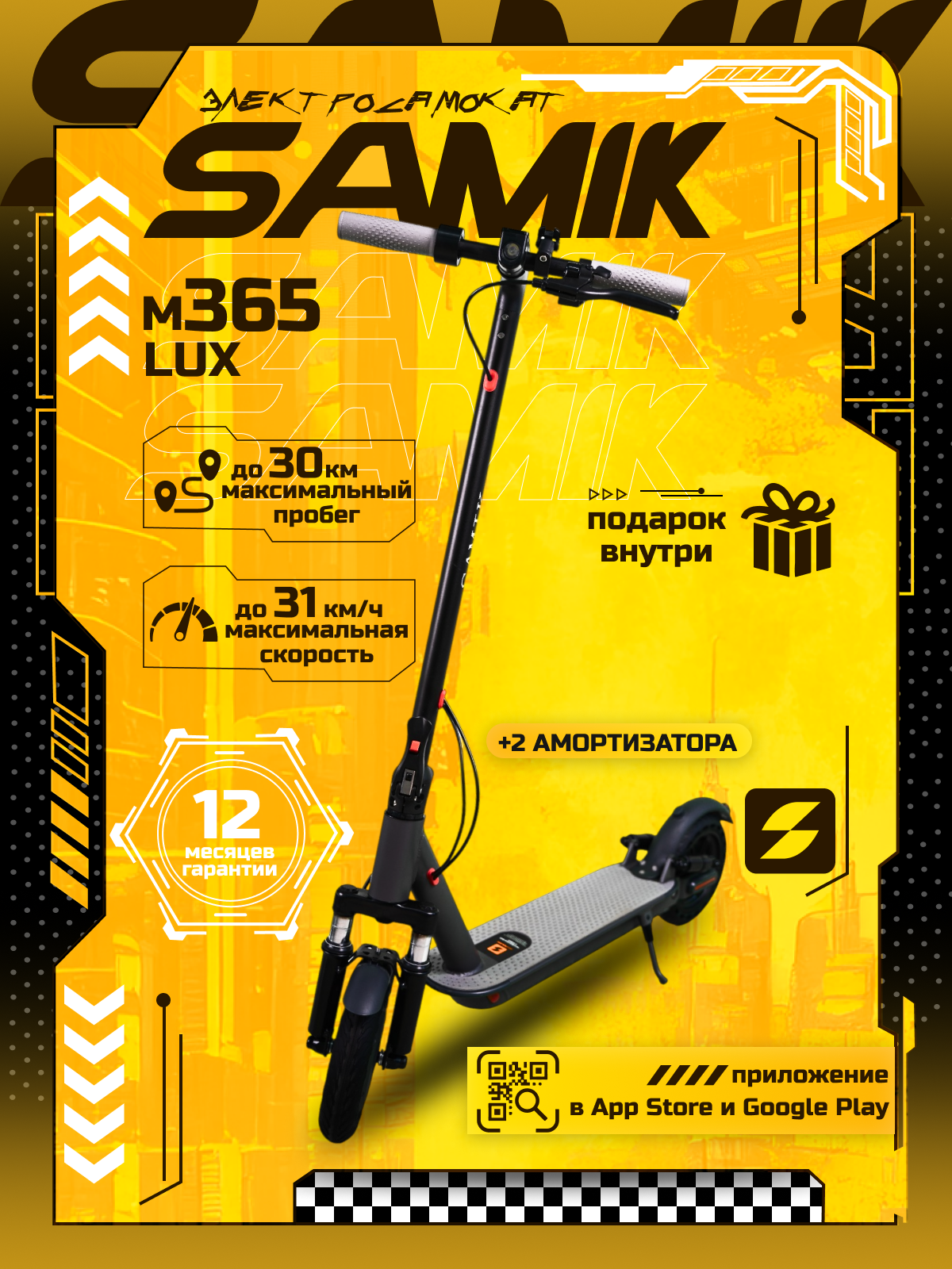 Купить Электросамокат SAMIK M365 Lux, черный, складной, максимальная нагрузка до 120кг, до 31 км\ч с доставкой по всей России. Электросамокат SAMIK M365 Lux, черный, складной, максимальная нагрузка до 120кг, до 31 км\ч: сравнение цен, характеристики, фото, актуальное наличие и цены.