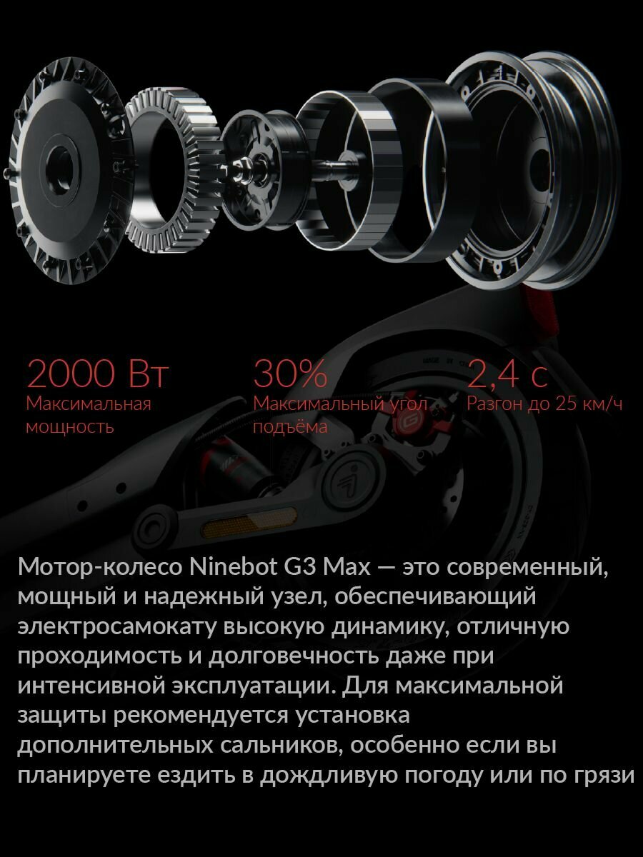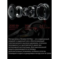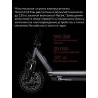 | Особенности электросамоката | дисплей, задний габарит/стоп-сигнал, круиз-контроль, ограничитель скорости, передняя фара (фонарь), поддержка Bluetooth, привод задний, приложение на смартфон |