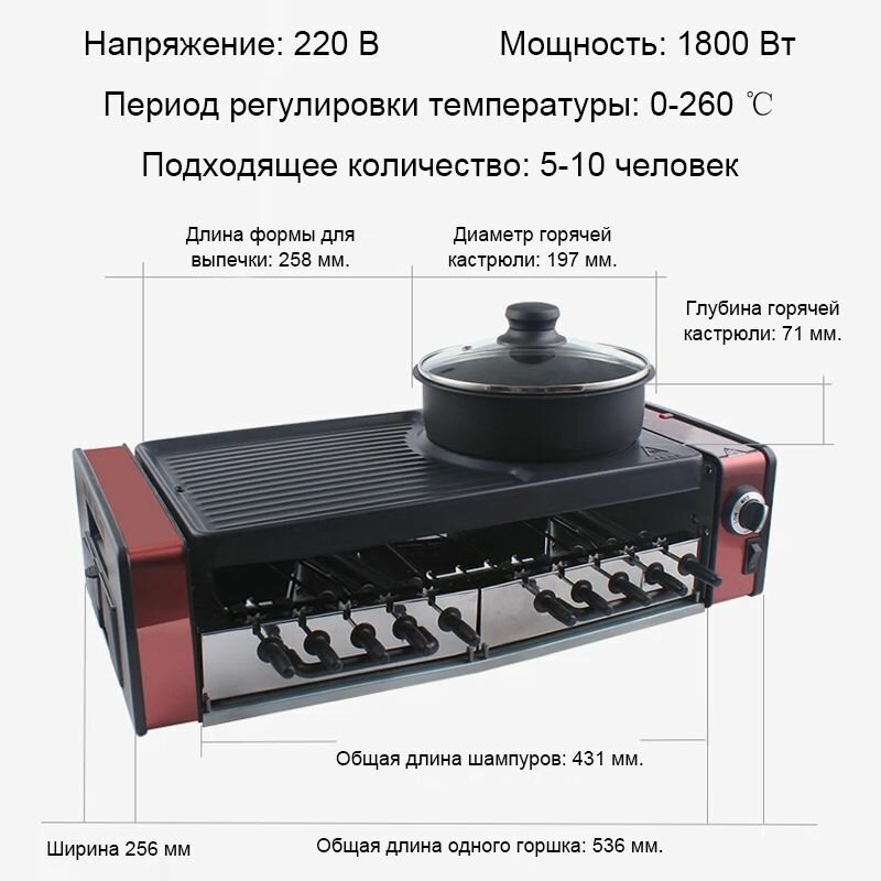 Шампуры для барбекю могут вращаться автоматически для более равномерного нагрева. Противень с антипригарным покрытием, более удобный для выпечки и чистки. Быстрый нагрев мощностью 1200 Вт с большей площадью нагрева. Трехуровневую ручку регулировки температуры можно регулировать для выбора различной температуры нагрева в зависимости от разных ингредиентов. Красивые продукты
