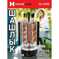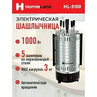 Купить Электрошашлычница Homieland HL-5100, 1000 Вт, автоматическое вращение, 5 шампуров с доставкой по всей России.