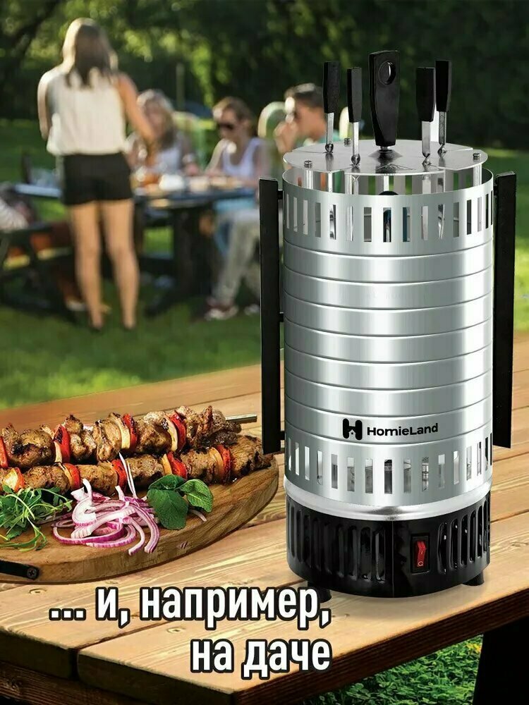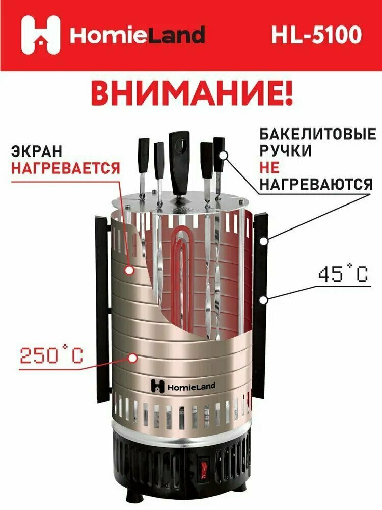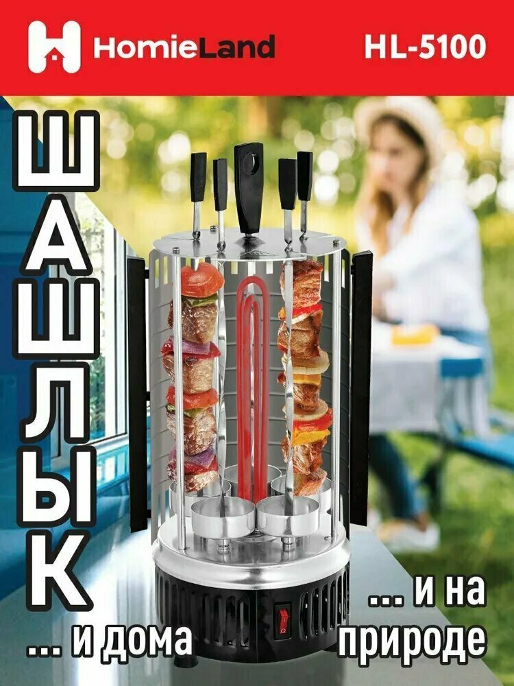 Электрошашлычница Homieland HL-5100, 1000 Вт, автоматическое вращение, 5 шампуров: сравнение цен, характеристики, фото, актуальное наличие и цены.