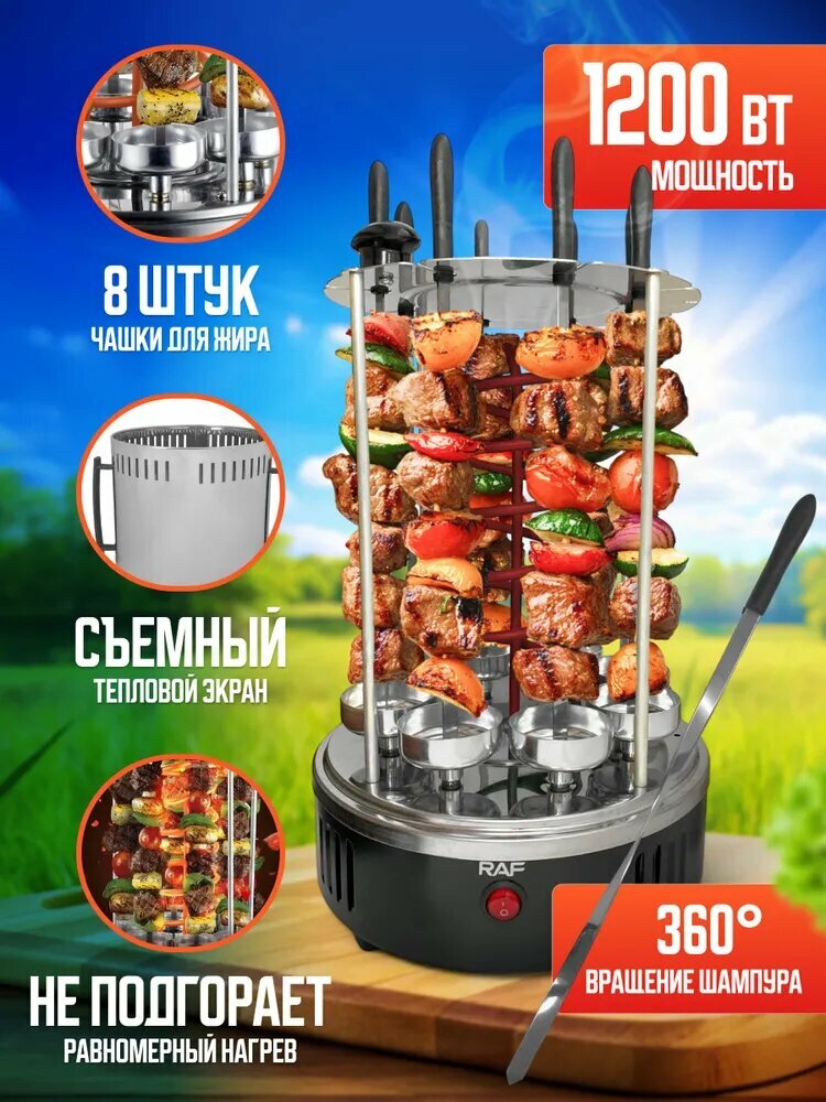 Купить Электрошашлычница вертикальная, шашлычница электрическая 1200 Вт, 8 шампуров с доставкой по всей России.