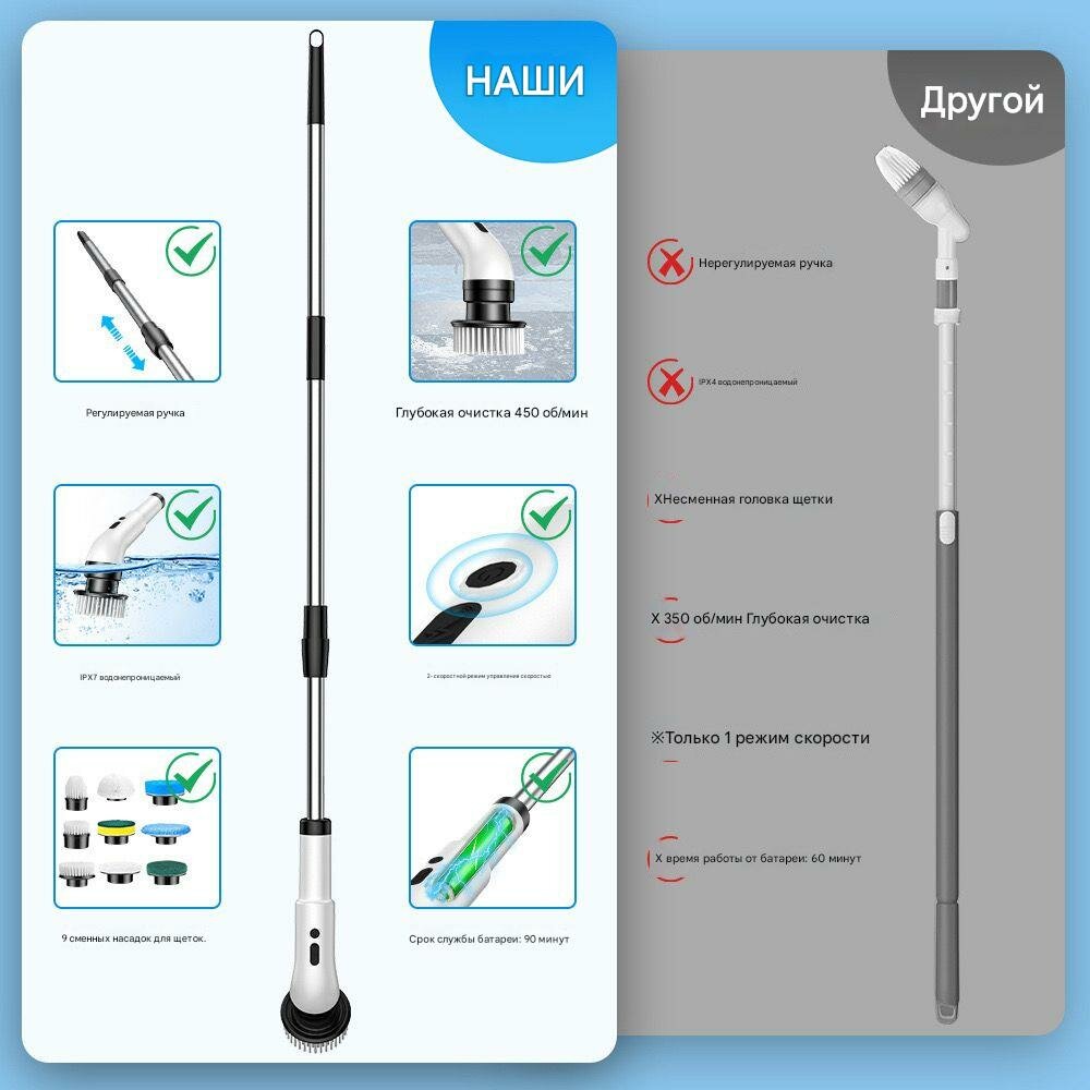 Электрощетка для уборки с телескопической ручкой 9в1, электрическая щетка с 9 насадками: сравнение цен, характеристики, фото, актуальное наличие и цены.