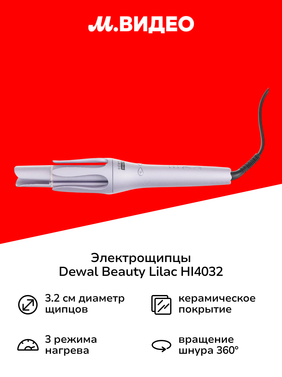 | Дополнительная информация | Отключение при перегреве; Индикация готовности к работе; Быстрый нагрев; Индикация режима работы; Индикация температуры; Автоматическая завивка локонов; Регулировка температуры; Звуковой сигнал эффекта укладки; Без зажима; Вращение шнура; Вилка евростандарт (тип C) |
