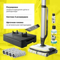 | Дополнительная информация | система 2 резервуаров; регулировка скорости вращения щеток и расхода воды; базовая станция с функцией очистки |