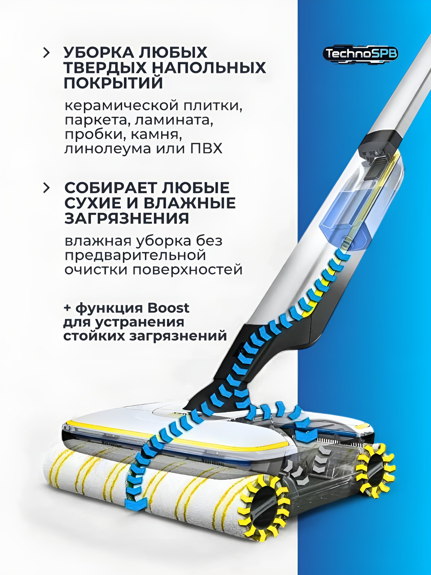 | Дополнительная информация | Щеточная головка со встроенными светодиодами; Система 2 резервуаров; Регулировка скорости вращения щеток и расхода воды; Базовая станция с функцией очистки; Зарядное устройство |