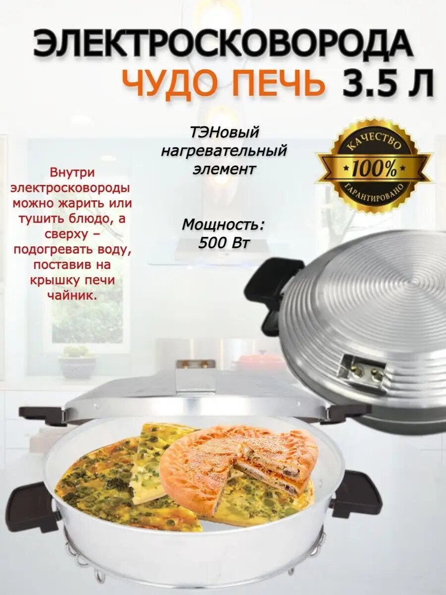 Объем «Чудо»-печи Уральского Завода Бытовых Изделий – 3,5 л. Крышка с мощным ТЭНом равномерно распределяет температуру, а также исключает возможность подгорания блюд.