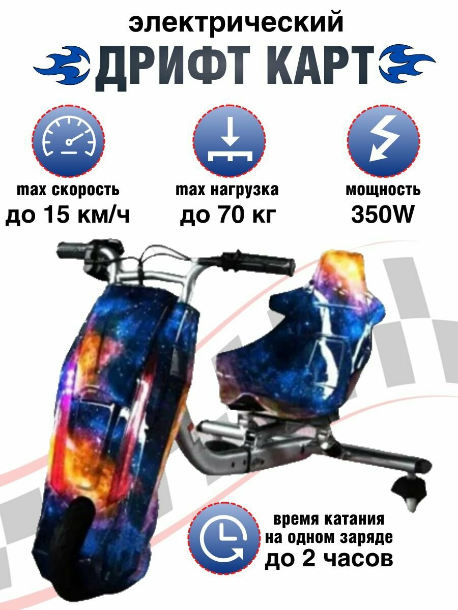 Купить Электроскутер Дрифт Карт Roobax Wolong»Drift-Trike», цвет Галактика космос с доставкой по всей России.