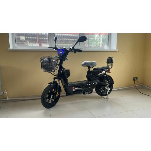 Он оснащён литиевым аккумуляторами 48в12ам , сигналом, поворотниками, светодиодная фара, качественной протекторной резиной, катафотами и педалями . В комплекте идёт корзина, зеркала заднего вида, ключи, шлем,