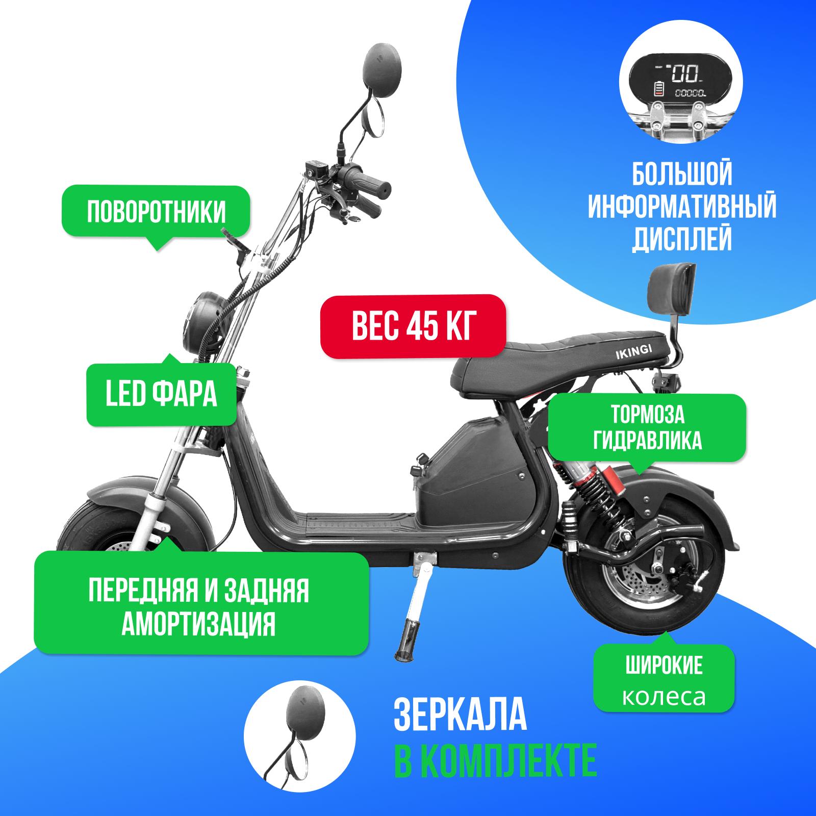Купить Электроскутер IKINGI X1 PRO 1000W ( 60V/20Ah) — Черный и карбоновый цвет с доставкой по всей России.