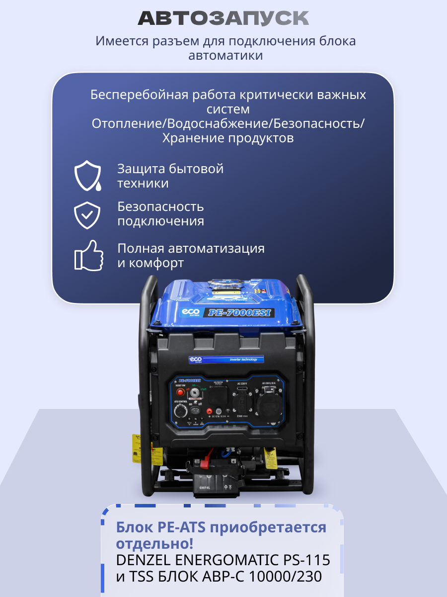 Купить Электростанция, генератор инверторный бензиновый ECO PE-7000ESI (EC1710-2) с доставкой по всей России.