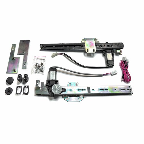 Комплект электростеклоподъемников с моторедукторами на две двери. В комплекте 2 стеклоподъемника, декоративные заглушки в отверстия от ручек механических стеклоподъемников.