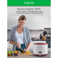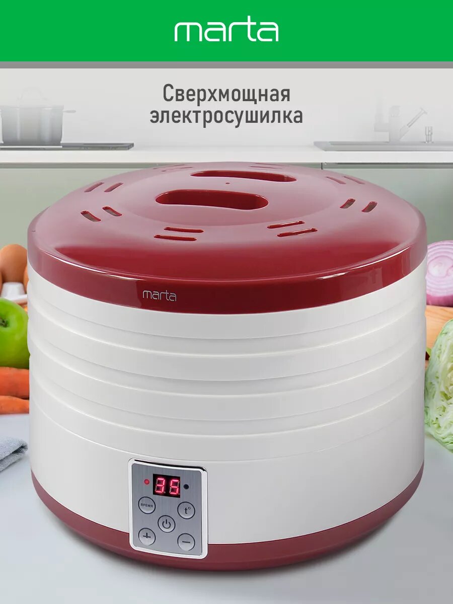 Сушилка для овощей и фруктов и грибов 4 уровня, max 700W, 4 поддона для сушки, электронный контроль температуры от 35 до 70°C, таймер до 72 часов, LED дисплей, встроенный вентилятор, световой индикатор Электросушилка c электронным контролем температуры для равномерной сушки трав, зелени, овощей, фруктов, орехов, грибов, приготовления вяленого мяса, птицы, рыбы, а так же возможностью приготовления кисломолочных продуктов и расстойки теста. Корпус и поддоны изготовлены из пищевого термостойкого пластика, устойчивого к высоким температурам, не выделяющего вредных веществ и посторонних запахов, сохраняющего вкус и аромат продуктов натуральными. Многоярусная конструкция позволяет разместить в небольшом объеме максимум продуктов и добиться их наилучшего распределения для быстрого и равномерного высушивания. Это самый эффективный способ сохранения продуктов, для каждого из которых можно подобрать оптимальный температурный режим от 35 до 70°C и проконтролировать время работы на контрастном LED-дисплее. Цифровое управление позволяет работать с электросушилкой с комфортом и удовольствием. Электронный контроль температуры гарантирует соблюдение условий сушки без Вашего участия, а электронный таймер позволит установить время сушки до 72 часов, по истечении которых сушилка выключится автоматически. Встроенный вентилятор равномерно нагнетает воздух в пространство сушилки, обеспечивая необходимые условия для эффективного сохранения полезных микроэлементов. Бесшумная работа электросушилки и энергосберегающий режим. Электросушилка – необычайно полезный прибор, поскольку способен на долгое время сохранить питательную ценность многих сезонных продуктов, обеспечив здоровое питание на весь год. Девайсы для кухни – Сушилка для овощей – необычайно полезный прибор, для вкусного и здорового питания. Сушилка для грибов для дачи, сушка для фруктов удобный гаджет для приготовления вкусной и здоровой пищи, для похудения.