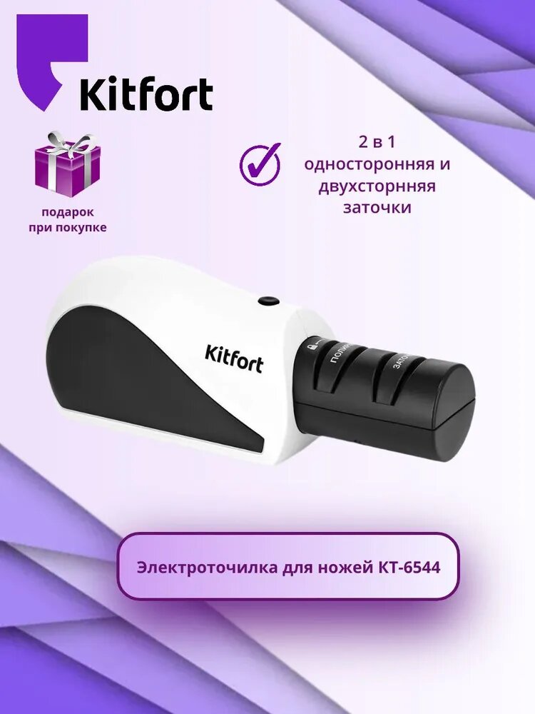 Купить Электроточилка для ножей Kitfort КТ-6544 (+подарок) с доставкой по всей России. Электроточилка для ножей Kitfort КТ-6544 (+подарок): сравнение цен, характеристики, фото, актуальное наличие и цены.