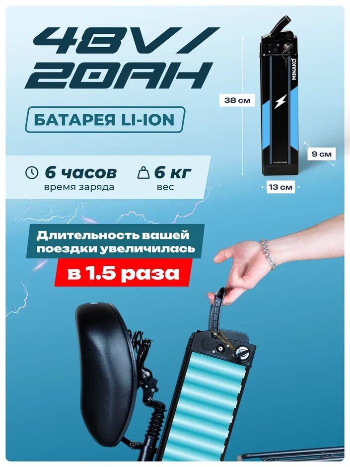 Электровелосипед OxyVolt "Low Fat Ranger" 750Вт, 48В, 18Ач, гидравлика, фэтбайк, складной, 20 дюймов, черный