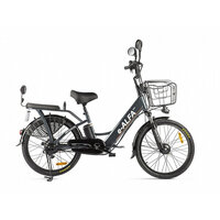 Комфортный электровелосипед без переключения передач. Технические особенности: стальная рама Hi-Ten, амортизационная вилка, двойные алюминиевые обода, надежные барабанные тормоза, электродвигатель 350W, аккумулятор Li-ion 48V/10.4Ah, защита цепи, длинные крылья, система освещения, зеркала заднего вида, задний багажник с сиденьем, передняя корзина, складная подножка. Максимальная нагрузка - 130 кг. Максимальная скорость - до 35 км/ч. Пробег на одной зарядке - до 40 км. Подходит для прогулочной езды по шоссе и ровным проселочным дорогам, а также для перевозки различных грузов. Диаметр колес - 24 дюйма. Вес - 34 кг.