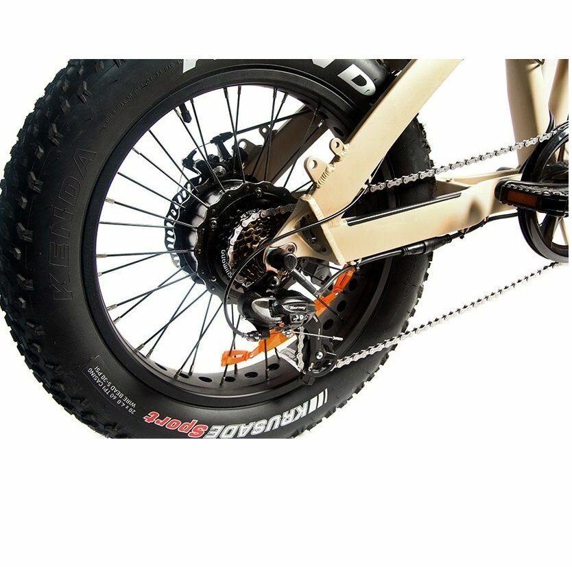 Электро-фэтбайк "Медведь 2.0 Fold 750 складной" – электровелосипед внедорожный с тяговым мотором Bafang 750 Вт, который выдает пиковую мощность 1200 Вт. Фэтбайк снабжен надежной алюминиевой вилкой, значительно повышающей управляемость за счёт жесткой конструкции. Электровелосипед складной с широкими колесами позволяется легко передвигаться как по асфальту, так и по бездорожью.