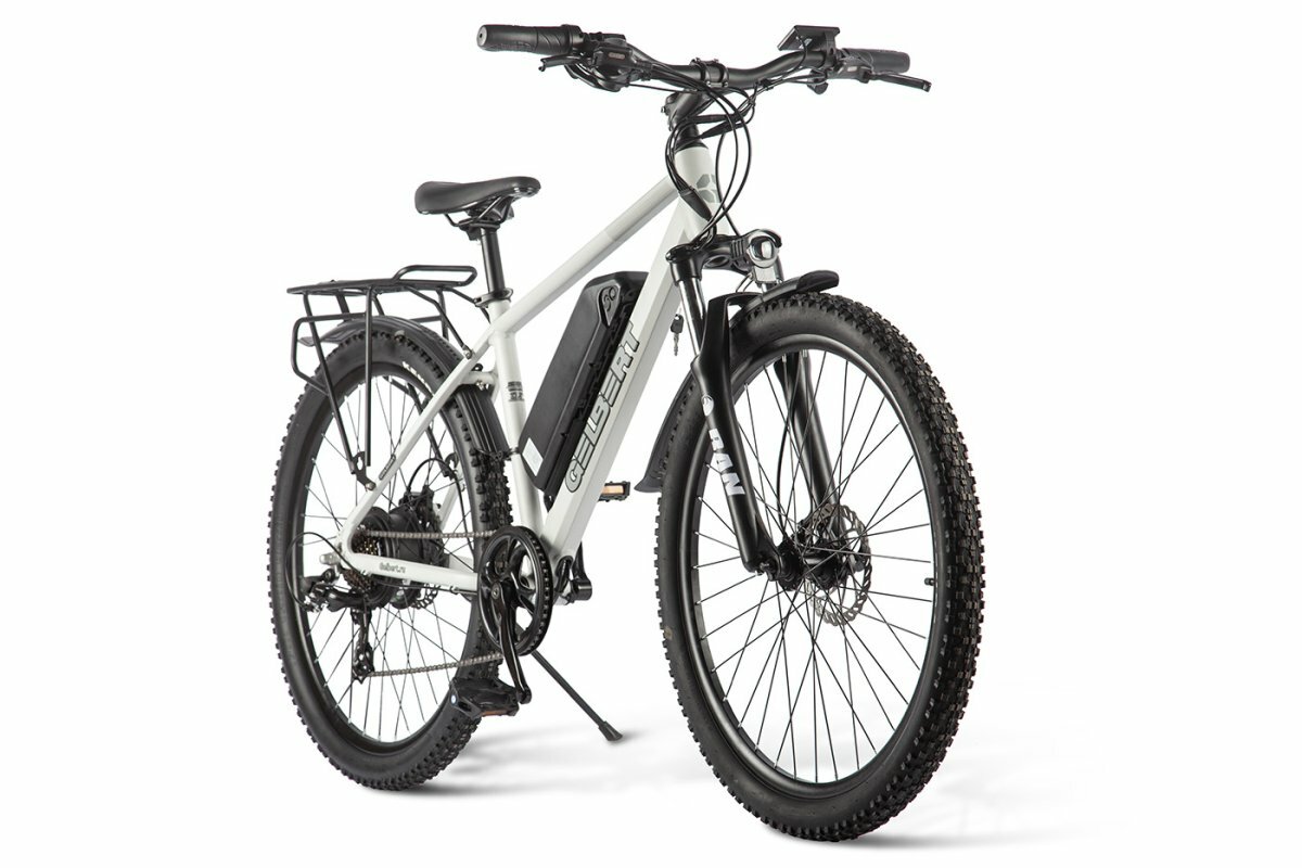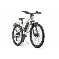 Спортивный электровелосипед с оборудованием начального класса Shimano, 7 скоростей. Технические особенности: легкая алюминиевая рама (скрытая проводка, кареточный стакан BSA, съемный петух, крепление калипера IS), амортизационная вилка (пружинно-эластомерная, ход 100 мм, блокировка, регулировка преднагрузки), двойные алюминиевые обода (под AV ниппель), дисковые механические тормоза (роторы 160/160 мм с креплением на 6 болтов), редукторный мотор мощностью 250 Вт, литий-ионный быстросъемный аккумулятор (36 В / 10.4 А·ч), пластиковые крылья, задний багажник, система освещения, ЖК-дисплей, защита цепи, подножка, катафоты. Подходит для активной езды по различным дорогам и пересеченной местности. Максимальная скорость: до 35 км/ч. Пробег на одной зарядке: до 40 кг. Грузоподъемность: до 110 кг. Диаметр колес - 27,5 дюймов. Вес - 22,5 кг.