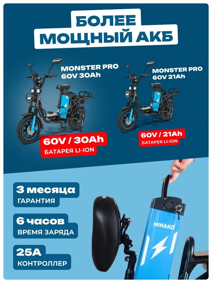 Электровелосипед колхозник Monster PRO 60V/30Ah 2025: сравнение цен, характеристики, фото, актуальное наличие и цены.