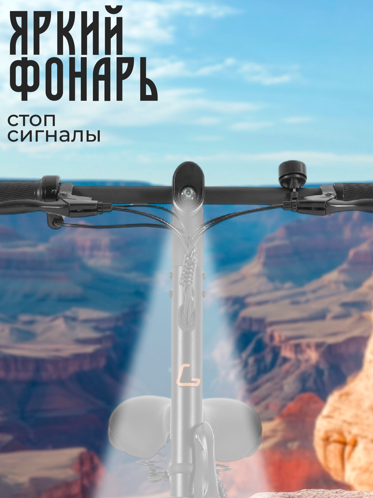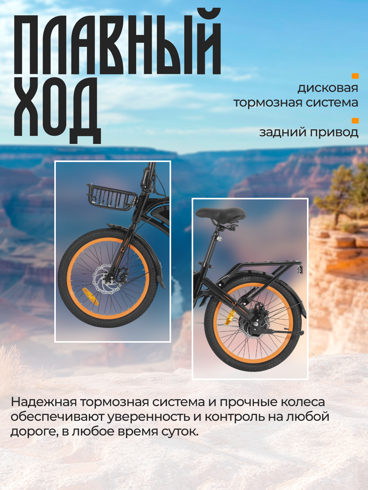 складной руль; дорожный просвет: 16 см; габариты: длина 117 см, ширина 50 см, высота 90 см (в сложенном 117 х 20 х 72 см); материал рамы седла: сталь; тип привода: цепной; крепления дискового тормоза: вилка, рама, втулка; материал рамы седла: ; рулевая колонка: безрезьбовая; наименование ободов: 14x1.75; материал бортировочного шнура: металл; комплектация: подножка, электрооборудование, звонок, крылья