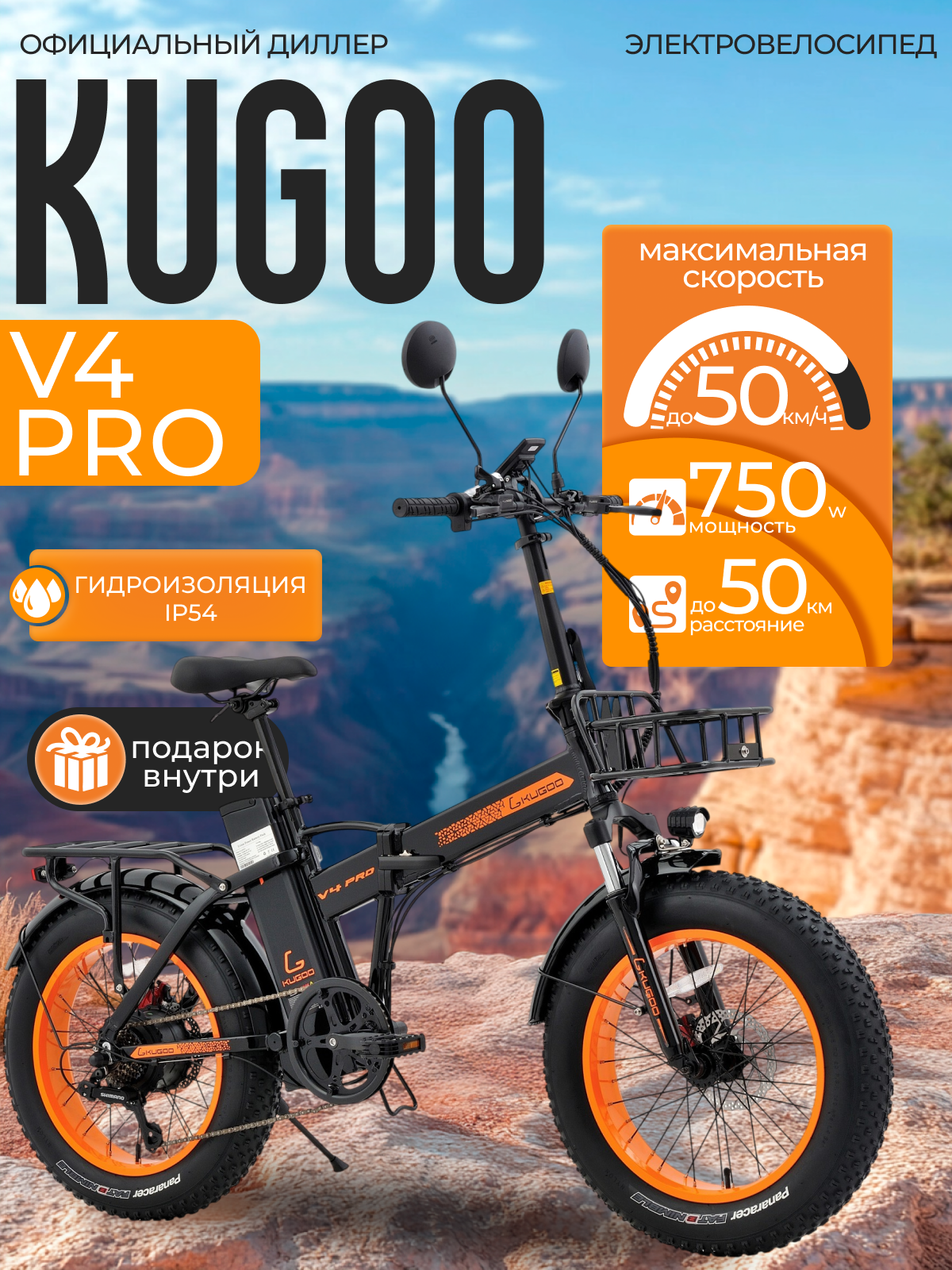 Купить Электровелосипед Kugoo Kirin V4 Pro, максимальная скорость 50 км/ч, пробег на заряде 50км с доставкой по всей России.