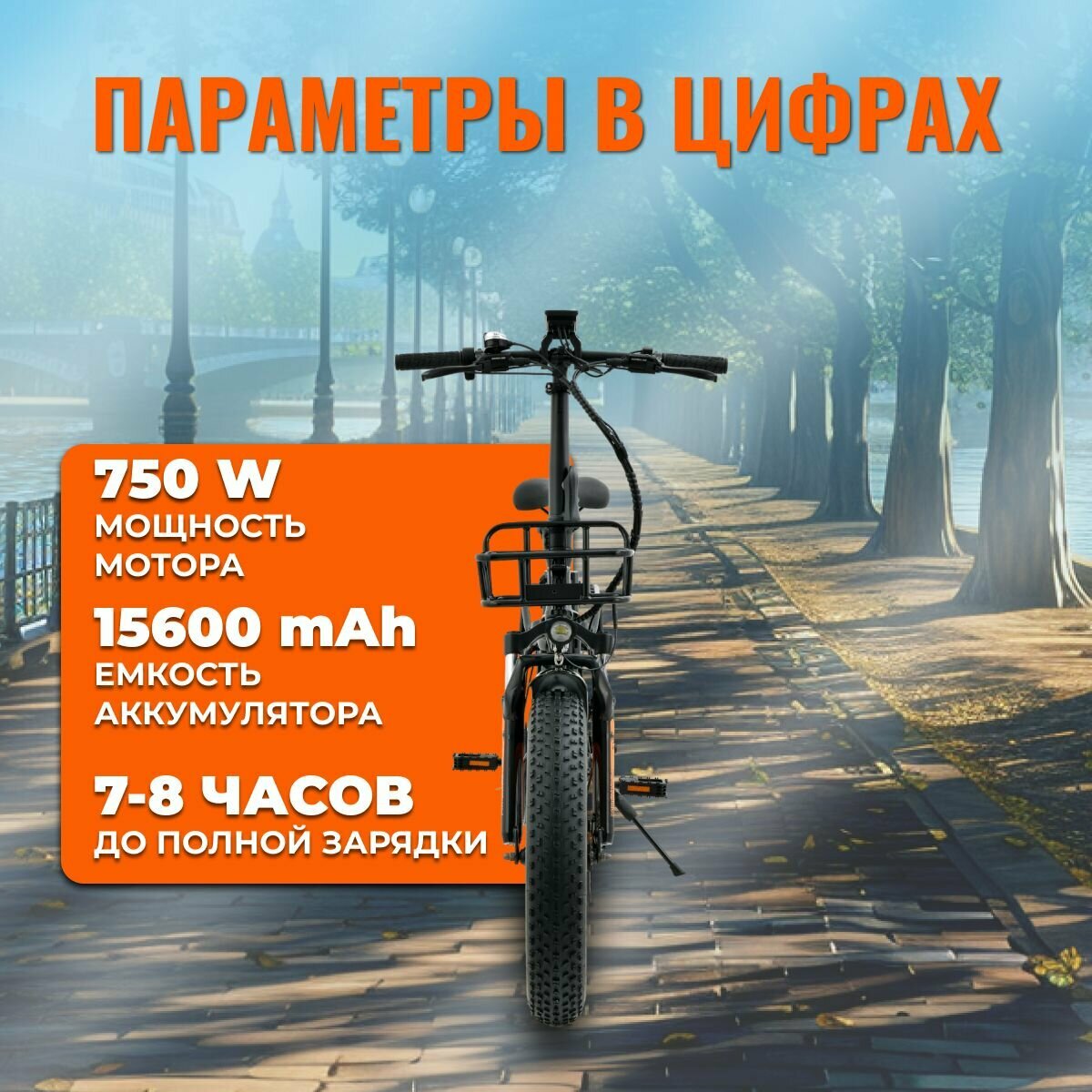 Электрический двигатель мощностью 750 Вт обеспечивает быстрое ускорение и позволяет легко преодолевать склоны и неровности дорог. Удобное управление газом на руле делает поездки комфортными и простыми.