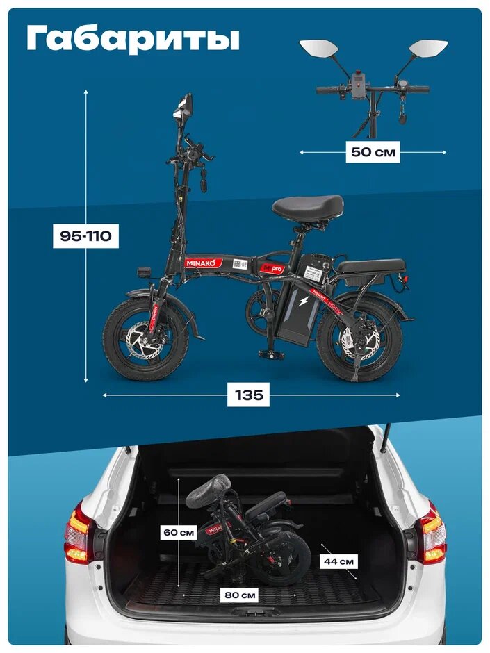 Представляем вам Minako M1 PRO 2025 – ваш верный спутник для комфортных поездок по городу! Этот стильный электровелосипед с мощным 240-ваттным мотором и литий-ионным аккумулятором ёмкостью 10500 мА*ч позволит вам преодолевать расстояния до 45 км на одном заряде, а время зарядки всего 4 часа. Его прочная стальная рама выдерживает нагрузку до 150 кг, а дисковые тормоза на переднем и заднем колесах обеспечат безопасное торможение. Удобный прямой руль и пружинно-эластомерная вилка сделают ваши поездки максимально комфортными. Minako M1 PRO 2025 – это идеальный выбор для тех, кто ценит скорость, комфорт и экологичность.