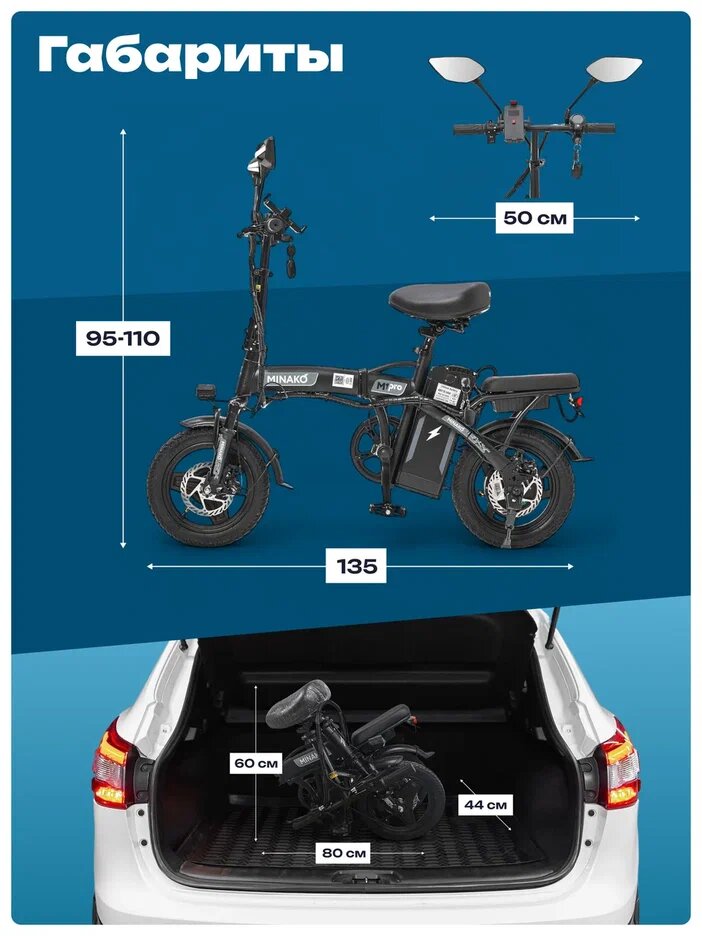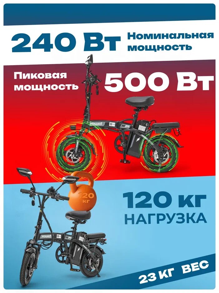 Представляем вам Minako M1 PRO 2025 – ваш верный спутник для комфортных поездок по городу! Этот стильный электровелосипед с мощным 240-ваттным мотором и литий-ионным аккумулятором ёмкостью 10500 мА*ч позволит вам преодолевать расстояния до 45 км на одном заряде, а время зарядки всего 4 часа. Его прочная стальная рама выдерживает нагрузку до 150 кг, а дисковые тормоза на переднем и заднем колесах обеспечат безопасное торможение. Удобный прямой руль и пружинно-эластомерная вилка сделают ваши поездки максимально комфортными. Minako M1 PRO 2025 – это идеальный выбор для тех, кто ценит скорость, комфорт и экологичность.