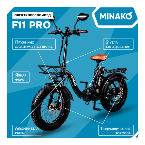 Купить Электровелосипед Minako F11 PRO 2023 500W Черный Гидравлический с доставкой по всей России.