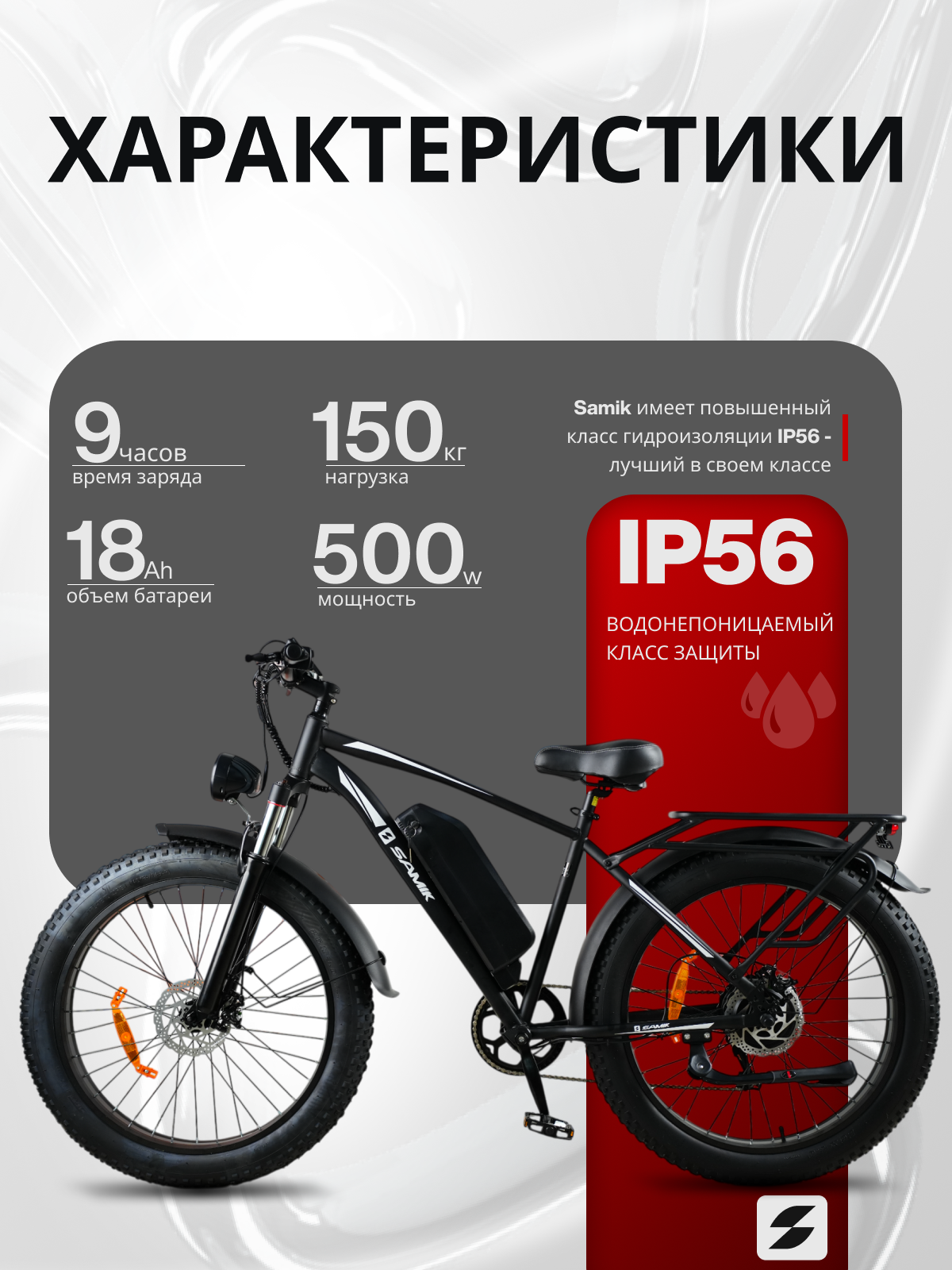 Электровелосипед SAMIK «V3 Max», черный, 45км/ч, мощность 240Вт, вес 36,1кг, АКБ 18Ah: сравнение цен, характеристики, фото, актуальное наличие и цены.