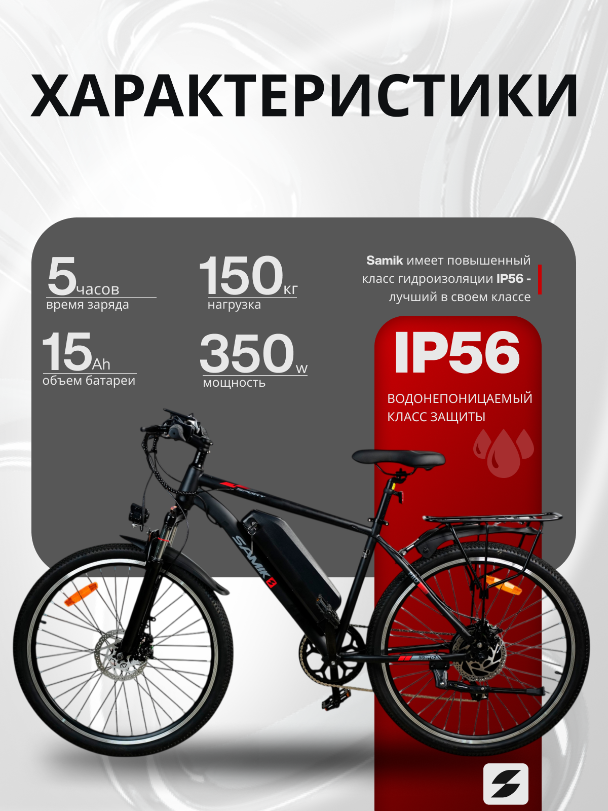 Купить Электровелосипед SAMIK «V3 Pro», для взрослых, пневматические колеса, 35км/ч, черный/белый с доставкой по всей России.