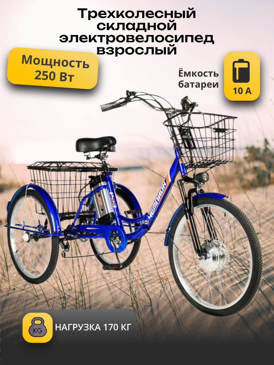 Электровелосипед трехколесный для взрослых РВЗ «Чемпион» (СКЛАДНОЙ), синий 250,10: сравнение цен, характеристики, фото, актуальное наличие и цены.