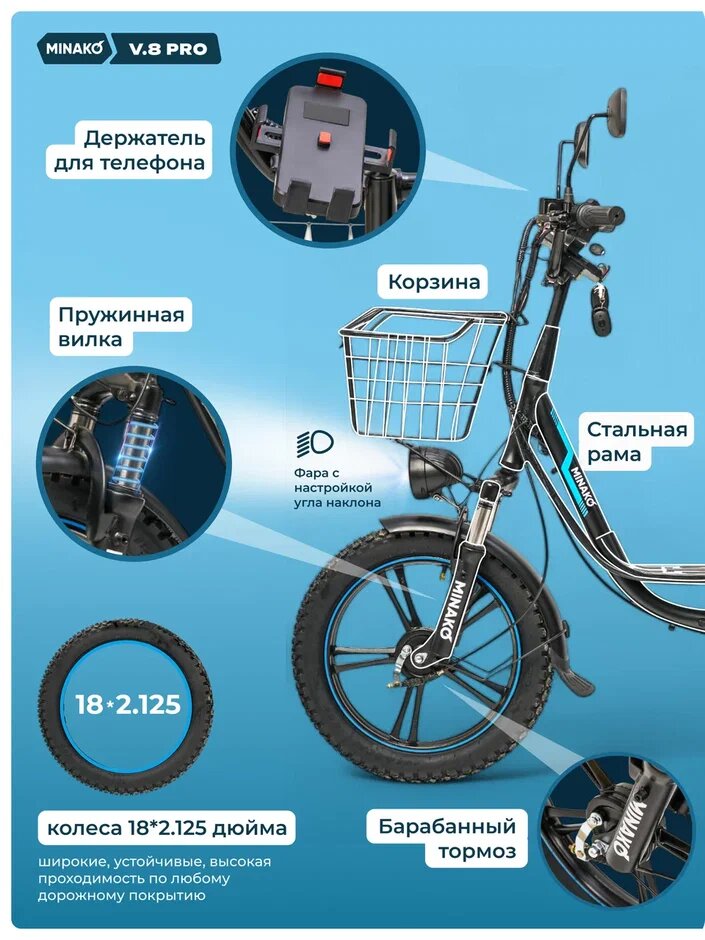 Электровелосипед V8 Pro 60V/13Ah 240W колхозник, Черный: сравнение цен, характеристики, фото, актуальное наличие и цены.